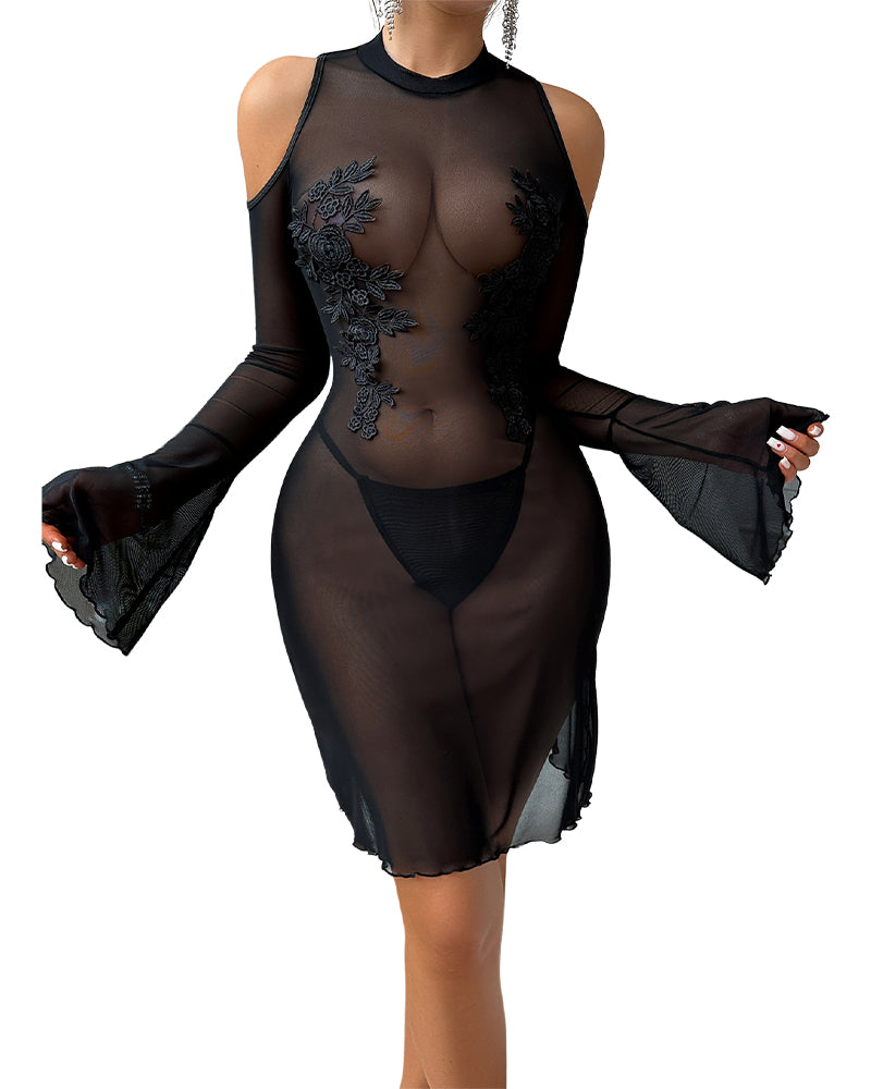 Mesh Embroidered Long Sleeves Mini Dress