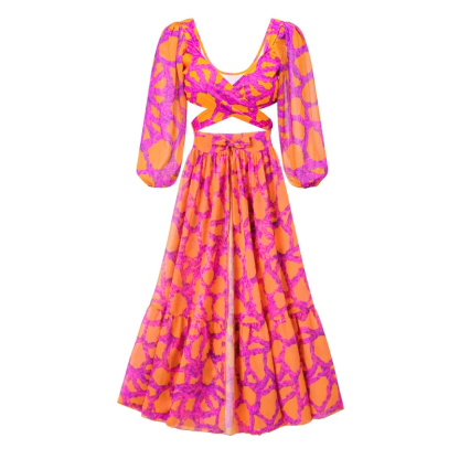 V Neck Net Yarn Long Sleeve Bikini Swimsuit and Skirt