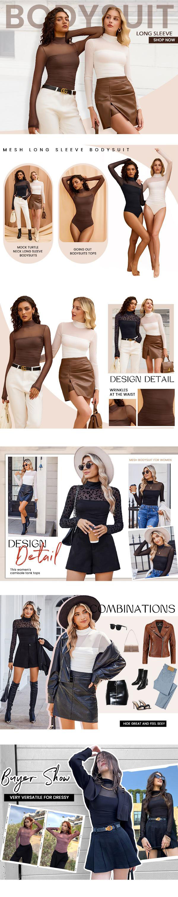 Vibecurve® Long Sleeve Bodysuit Turtle Neck Ruched Mesh Shapewear