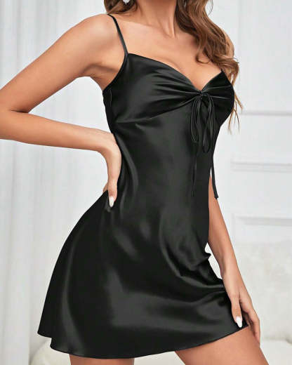 Ice Silk Backless Camisole Nightdress with Padded Bust