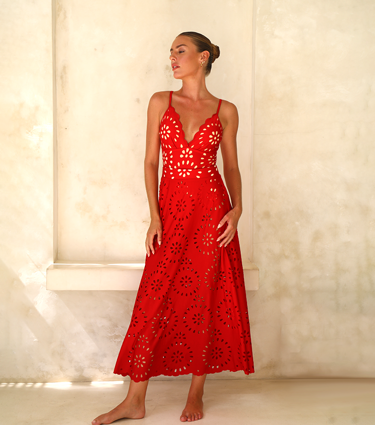 Laser Flower Hollow One Piece Swimsuit and Skirt