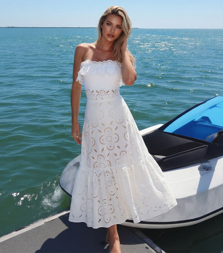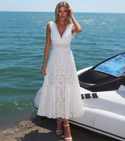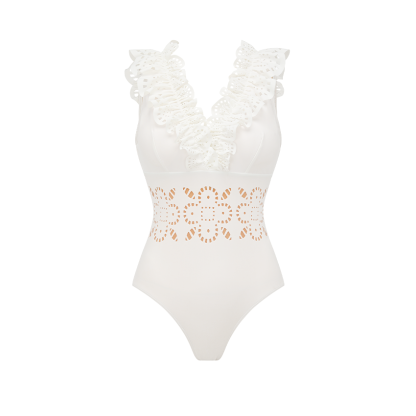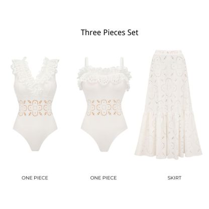 Ruffle White Laser Cutting Flower Hollow Swimsuit Set(s)