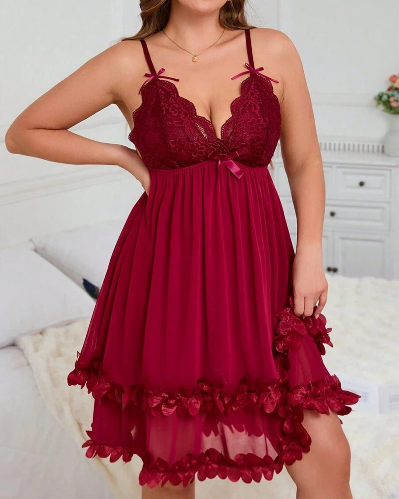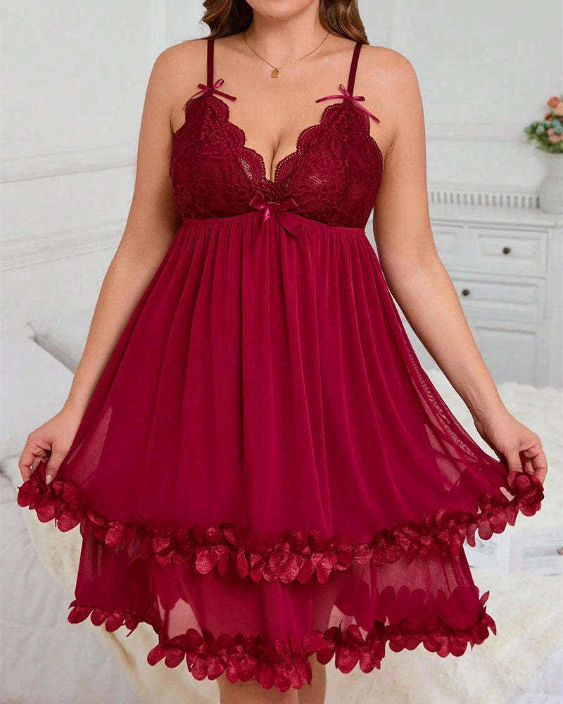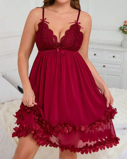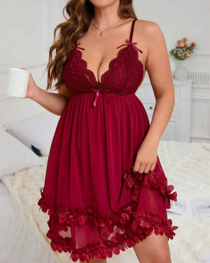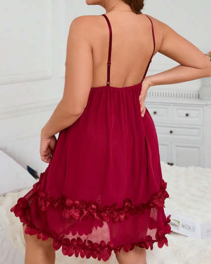 Sexy Plus Size 3D Floral Lace Sheer Camisole Nightdress – Elegant, Flirty & Romantic