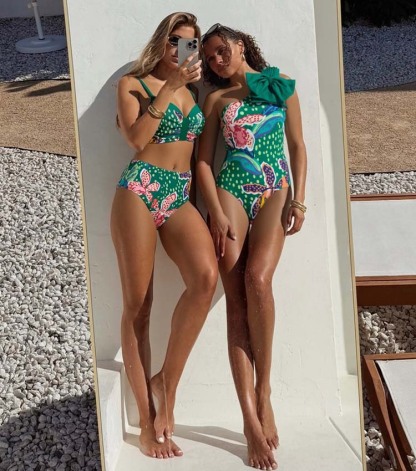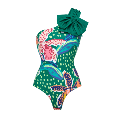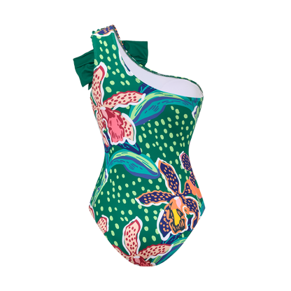Tropic Printed One Shoulder One Piece Swimsuit and Sarong Flaxmaker