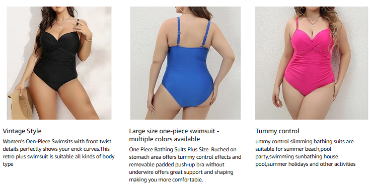• Push Up Plus Size Swimsuit: The adjustable straps, removable padded push up bra without underwire and clasp hook closure on the back bring maximum support;