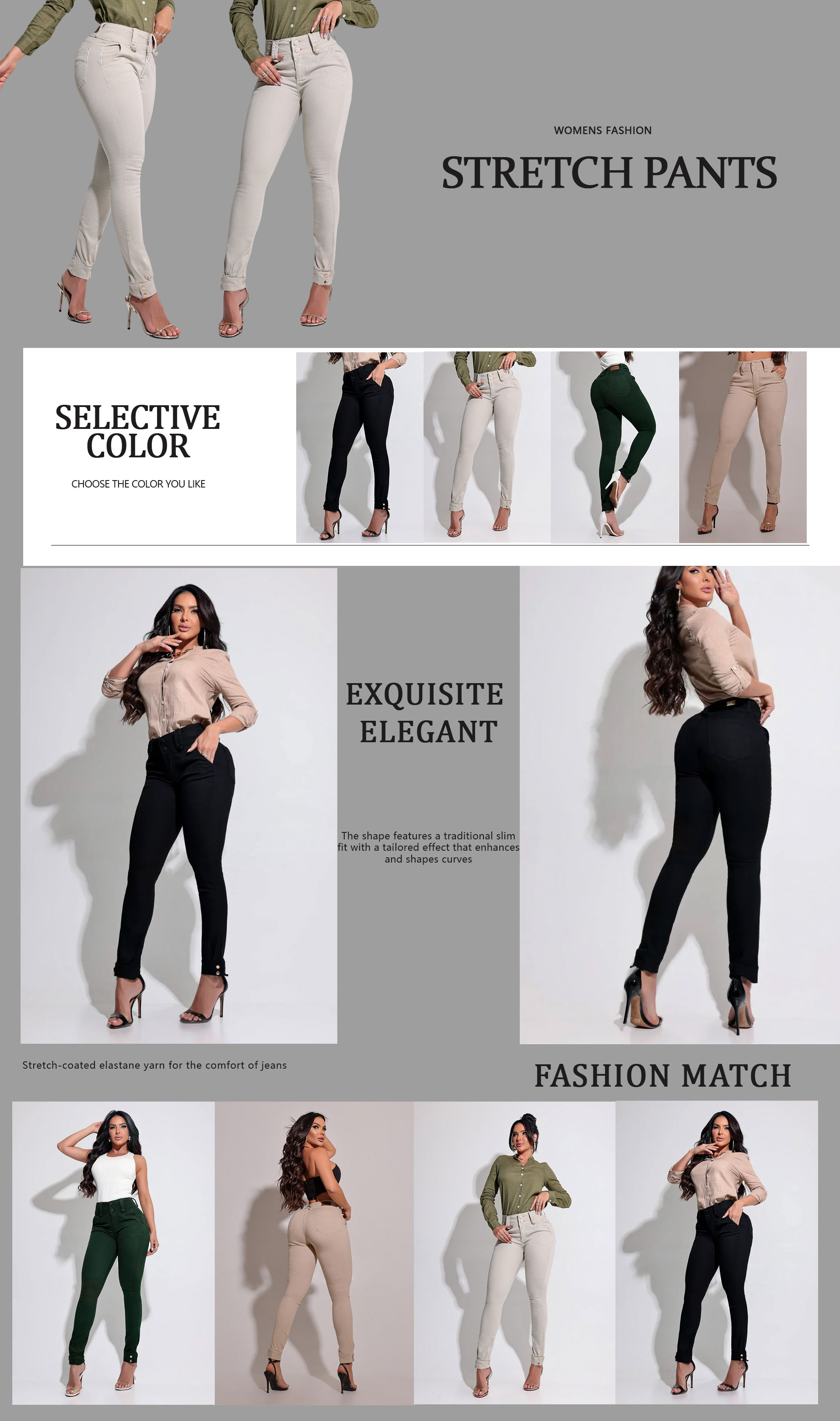 • High-stretch jeans;