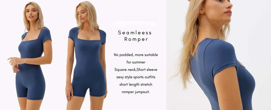 Vibecurve® Women's Short Sleeve Bodycon Romper Stretchy Square Neck Sexy Unitard Jumpsuit